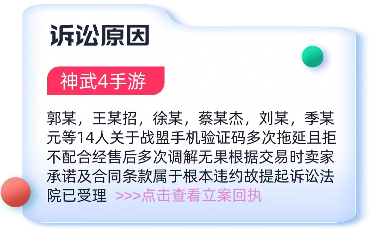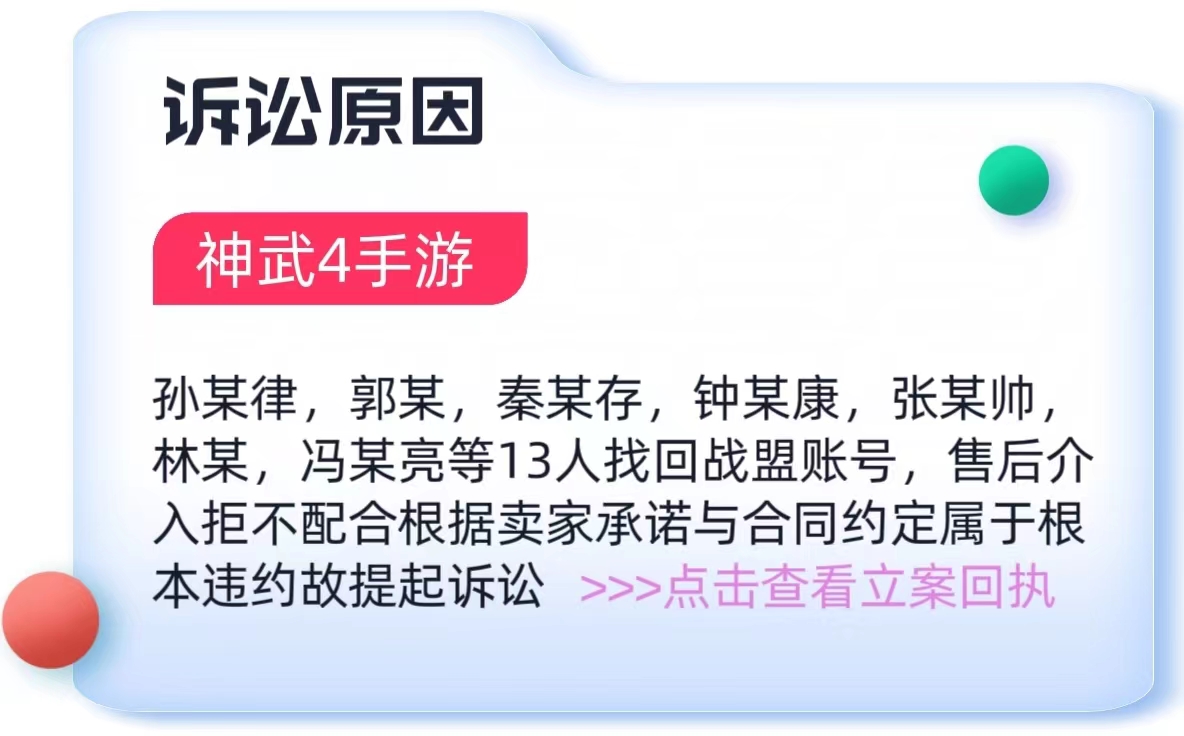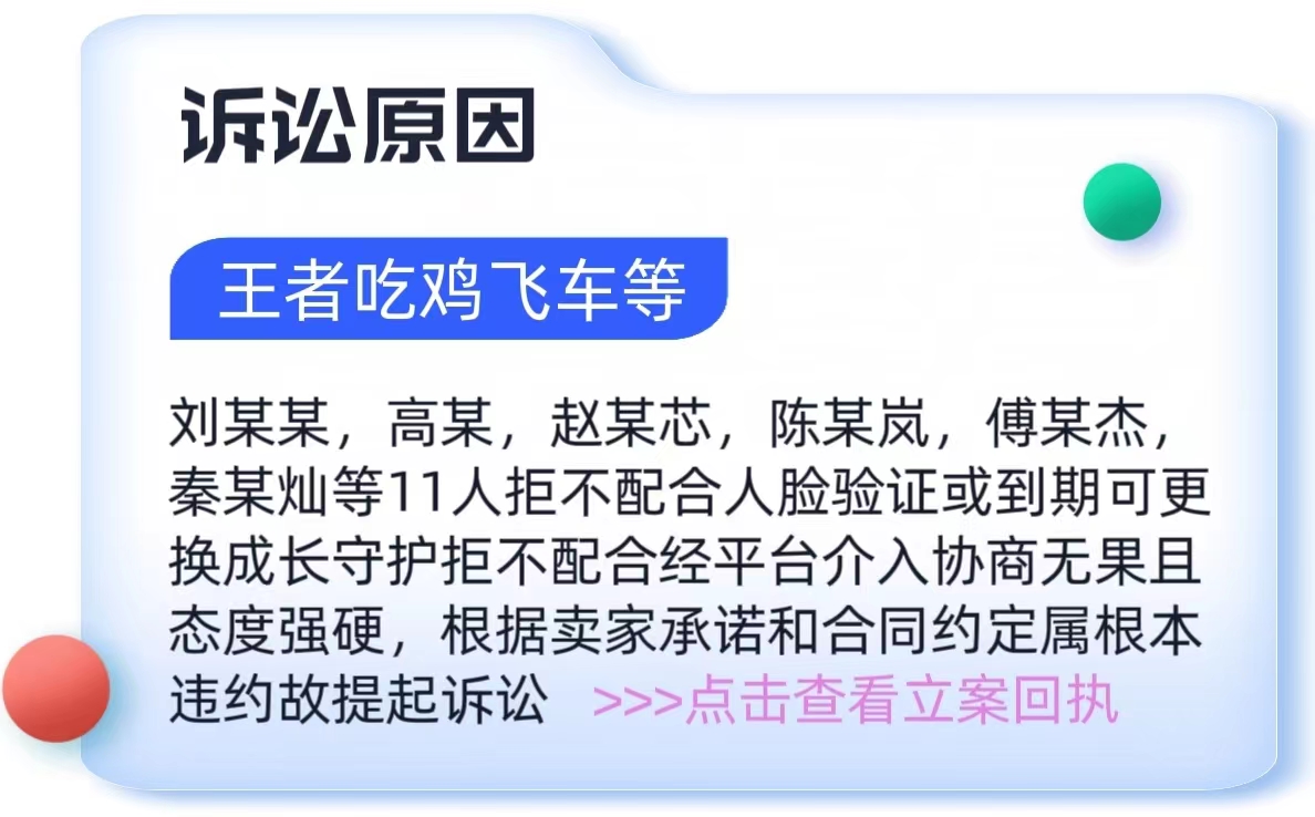 截止23年8月1日懒淘淘交易平台(原名懒懒游戏交易平台)累计发起公安立案1起,法院诉讼案件127起。其中委托代理公司或委托代理人发起单诉或多人批量诉讼120起,平台单诉或多人批量诉讼共7起,合计被告违约人共257人。现公示平台(不包含代理)单诉或批量诉讼立案受理通知书。